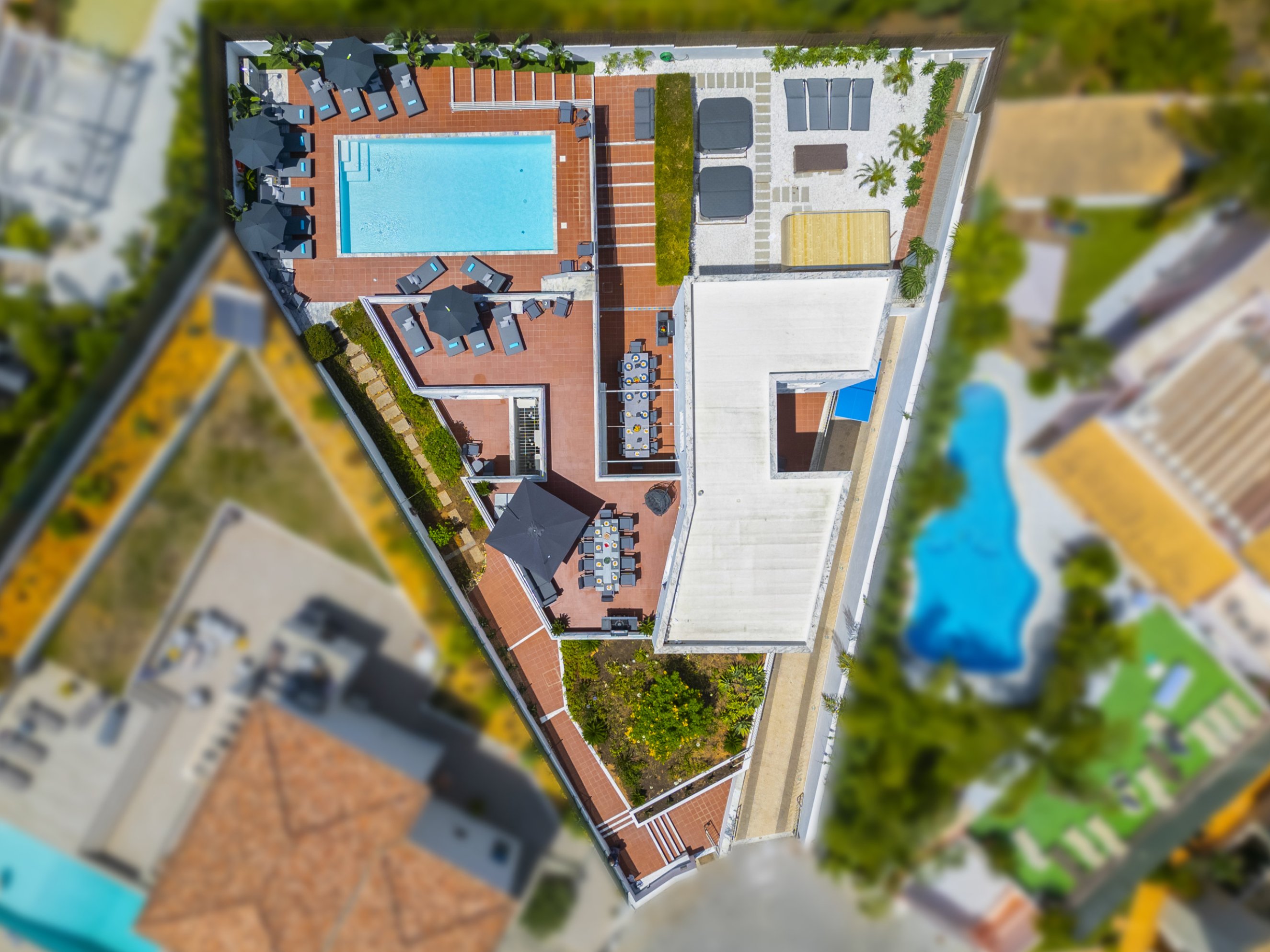 Outside, in addition to a heatable swimming pool (available at an extra cost), guests can enjoy a private spa area equipped with two jacuzzis (available at an extra cost), a sauna, and an ice bath (available at an extra cost), the perfect way to unwind after a day in the sun. The villa also offers a snooker table, ping pong table, and a barbecue area, ideal for outdoor dining and group fun. The outdoor area also features sunbathing spaces in a peaceful and private setting, with a portable speaker available to enhance your leisure time with music.