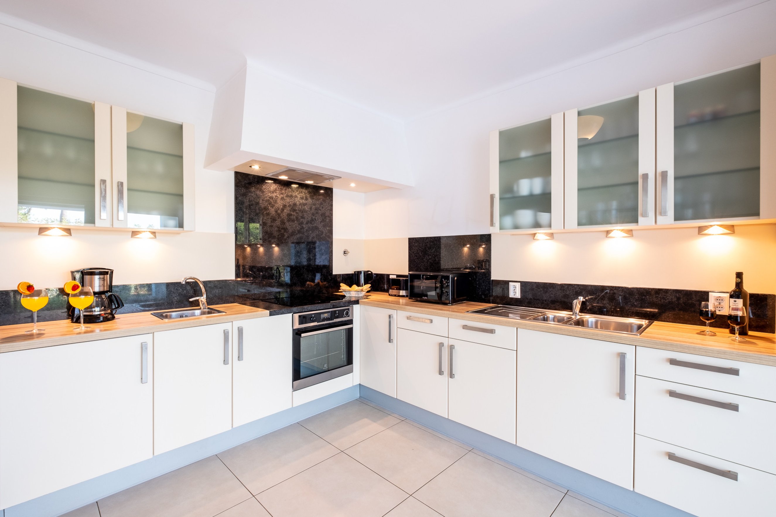 The fully equipped kitchen provides everything needed to prepare meals with ease and convenience.