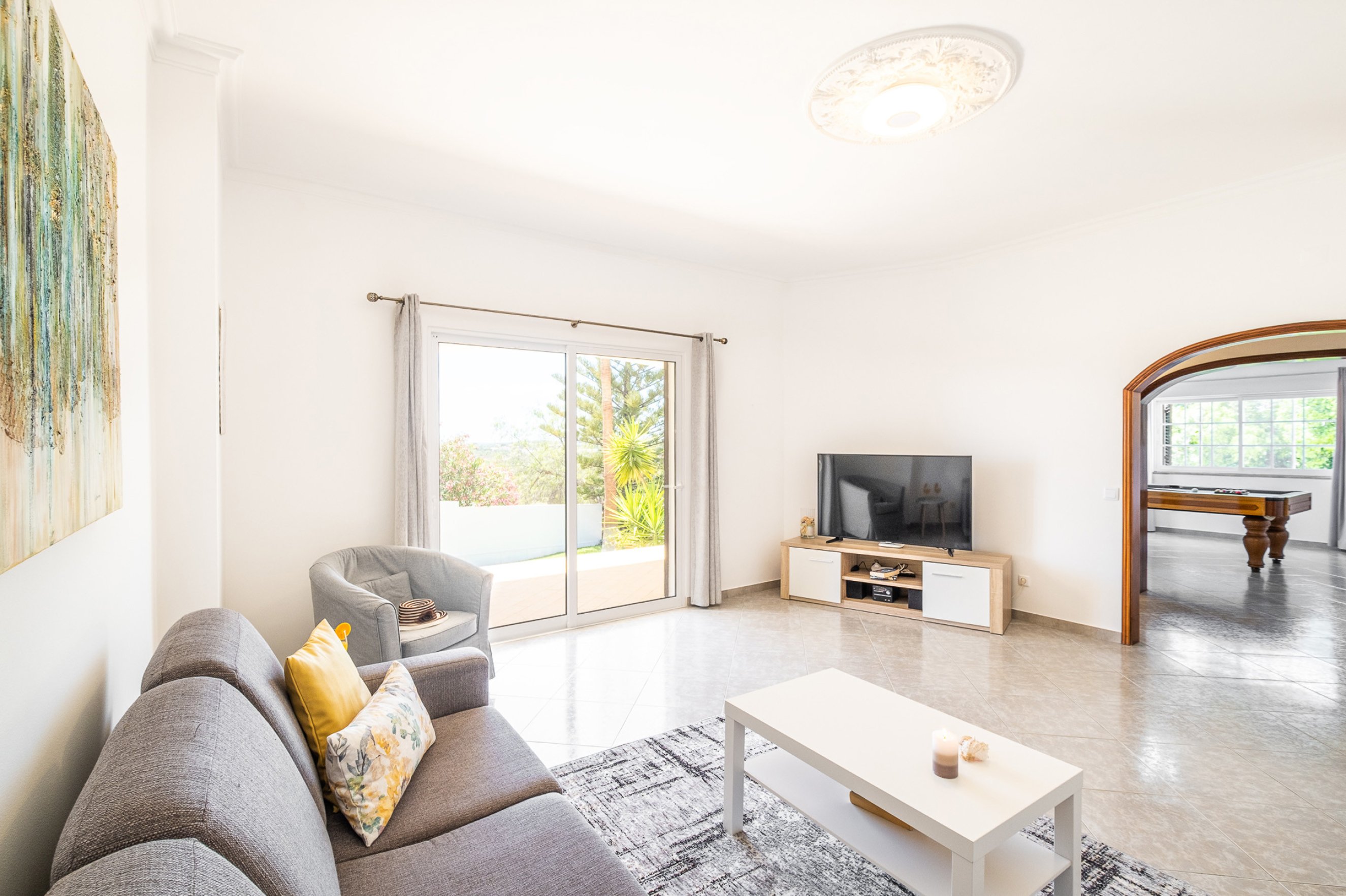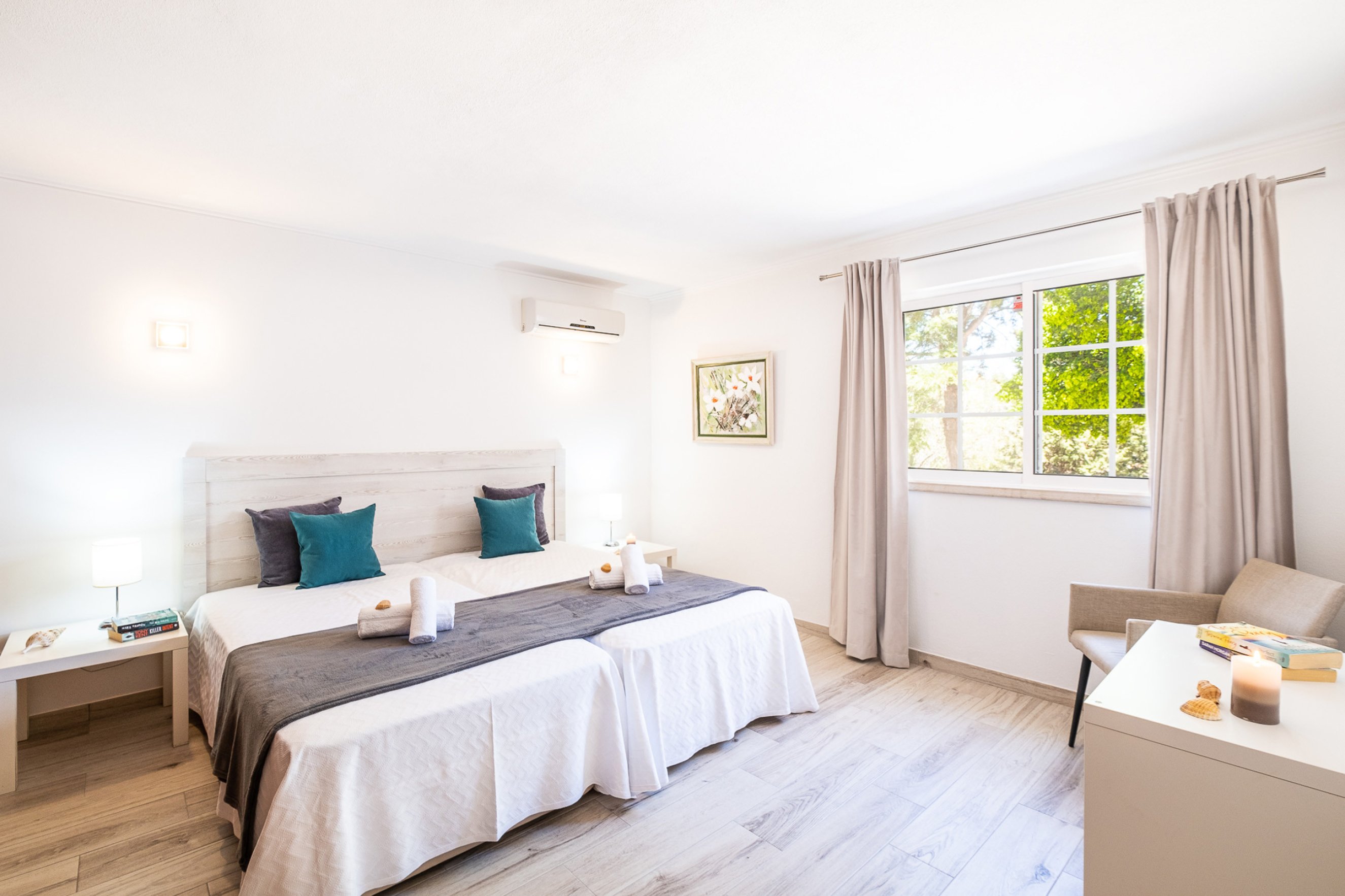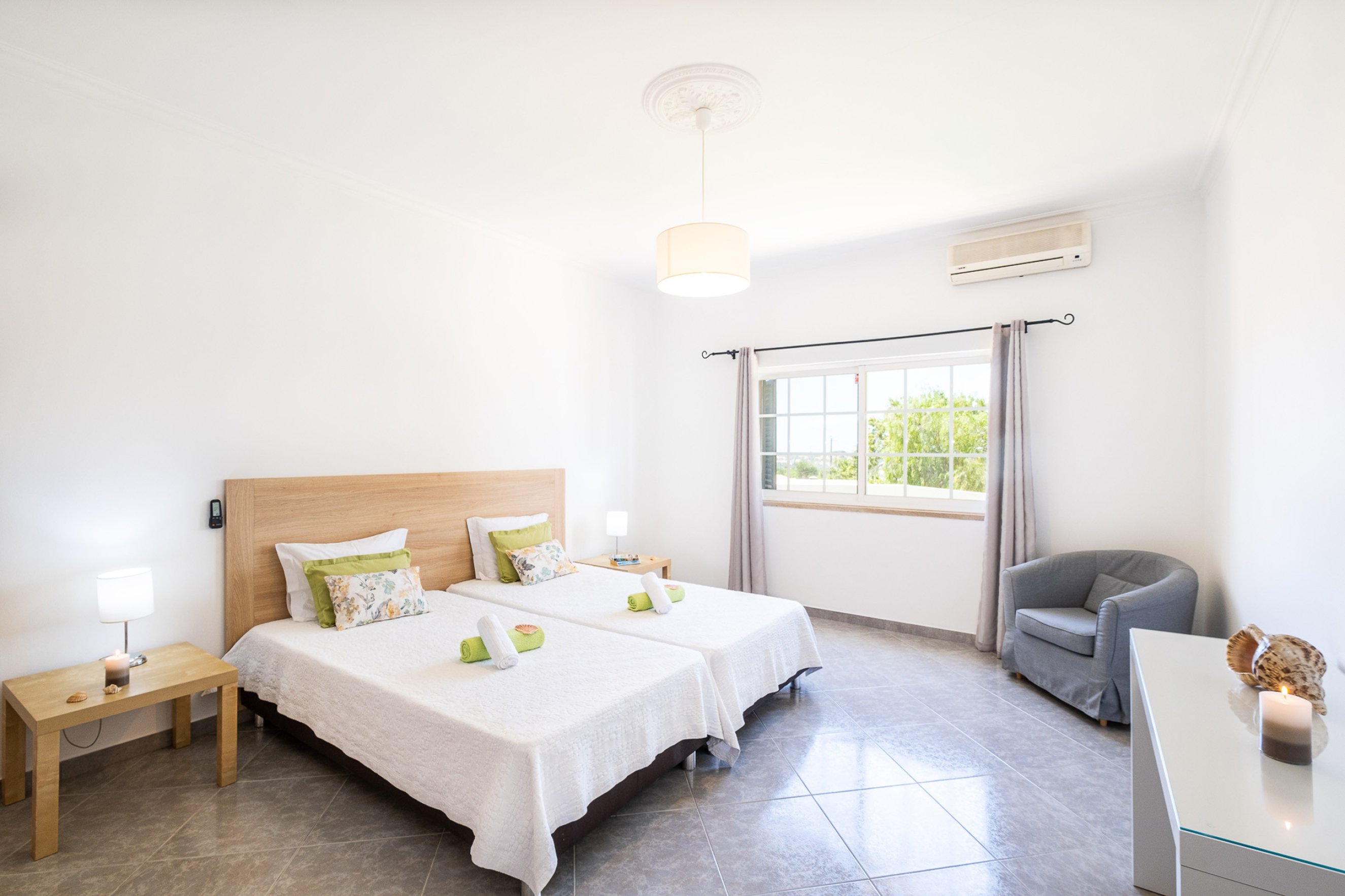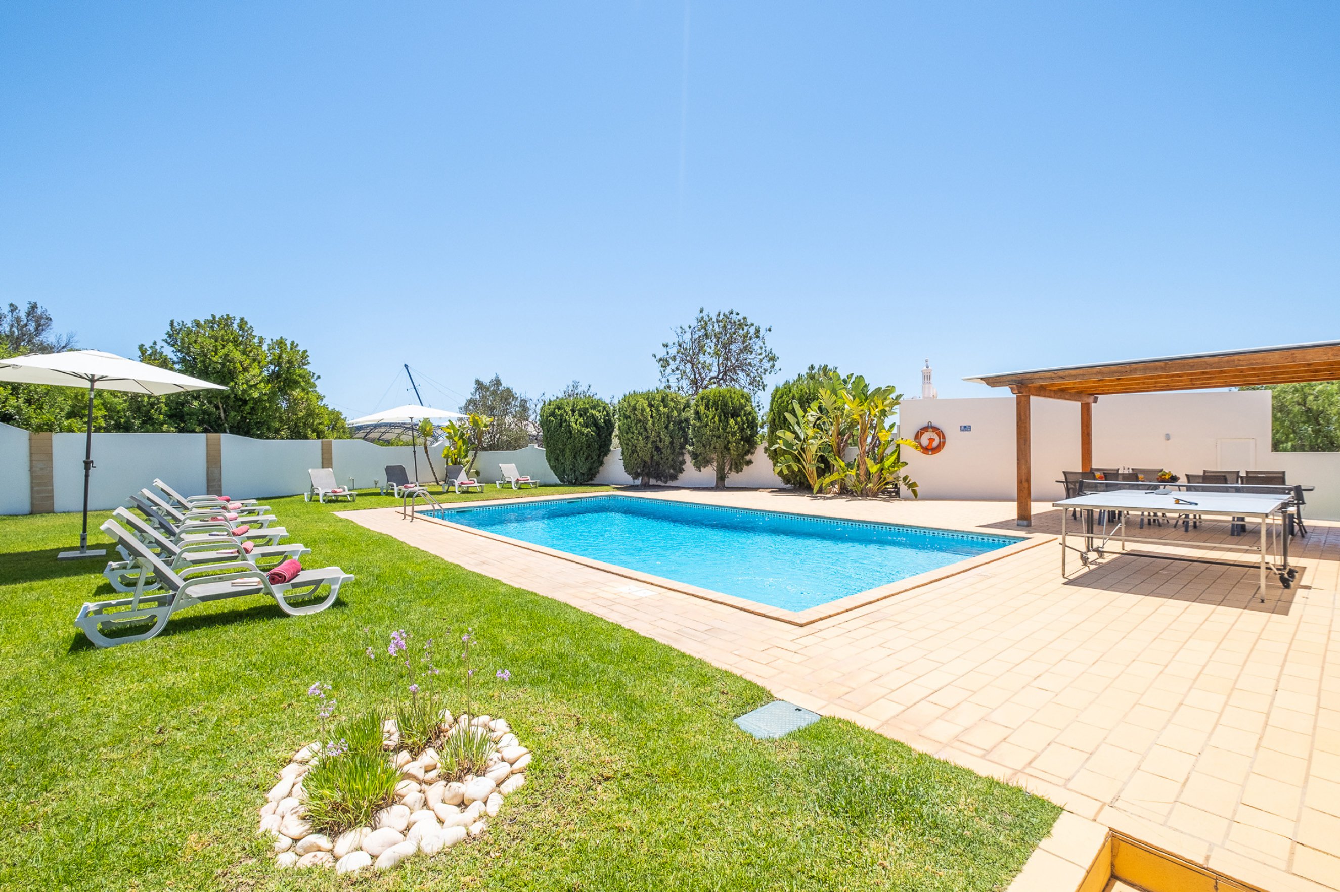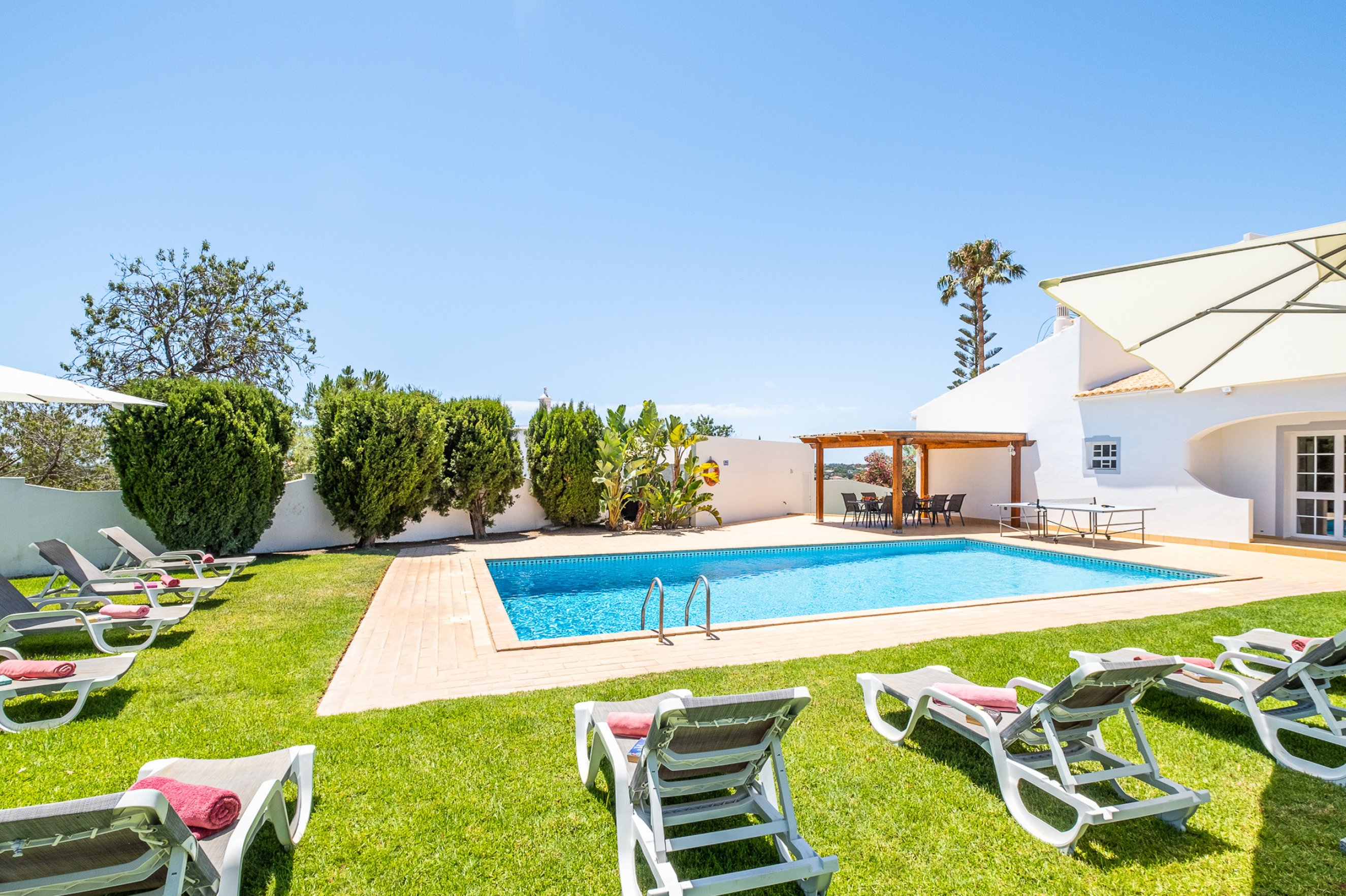We didn't bother hiring a car just used Uber & Bolt to get around prices are really cheap under €5 to get to Mall & supermarket . Vale do lobo and Quinta 15/20 mins away about €15 . Villa is very comfortable air con in every bedroom , really is home from home . |