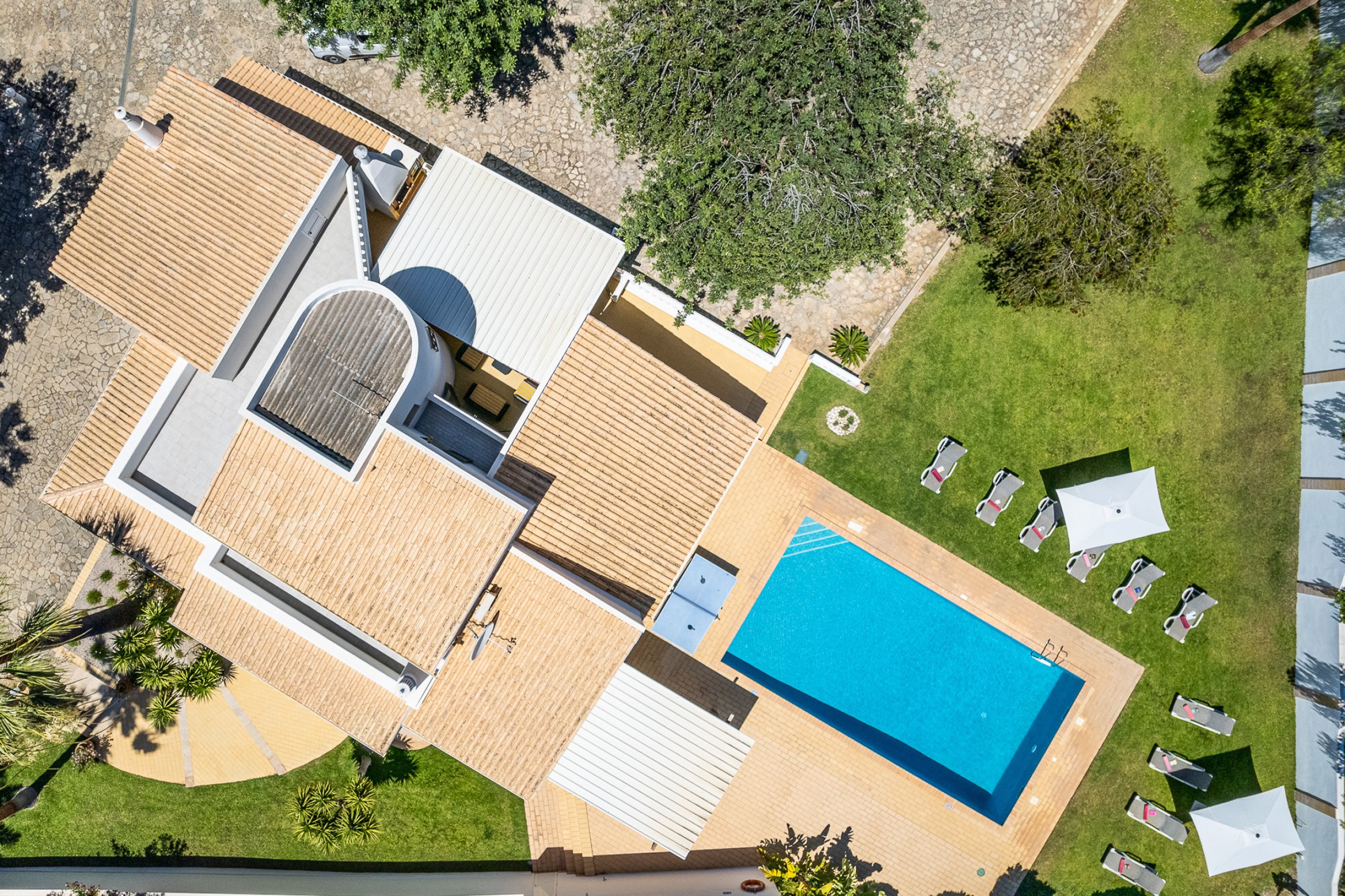 The villa has lots of space, lots of room inside and outside.