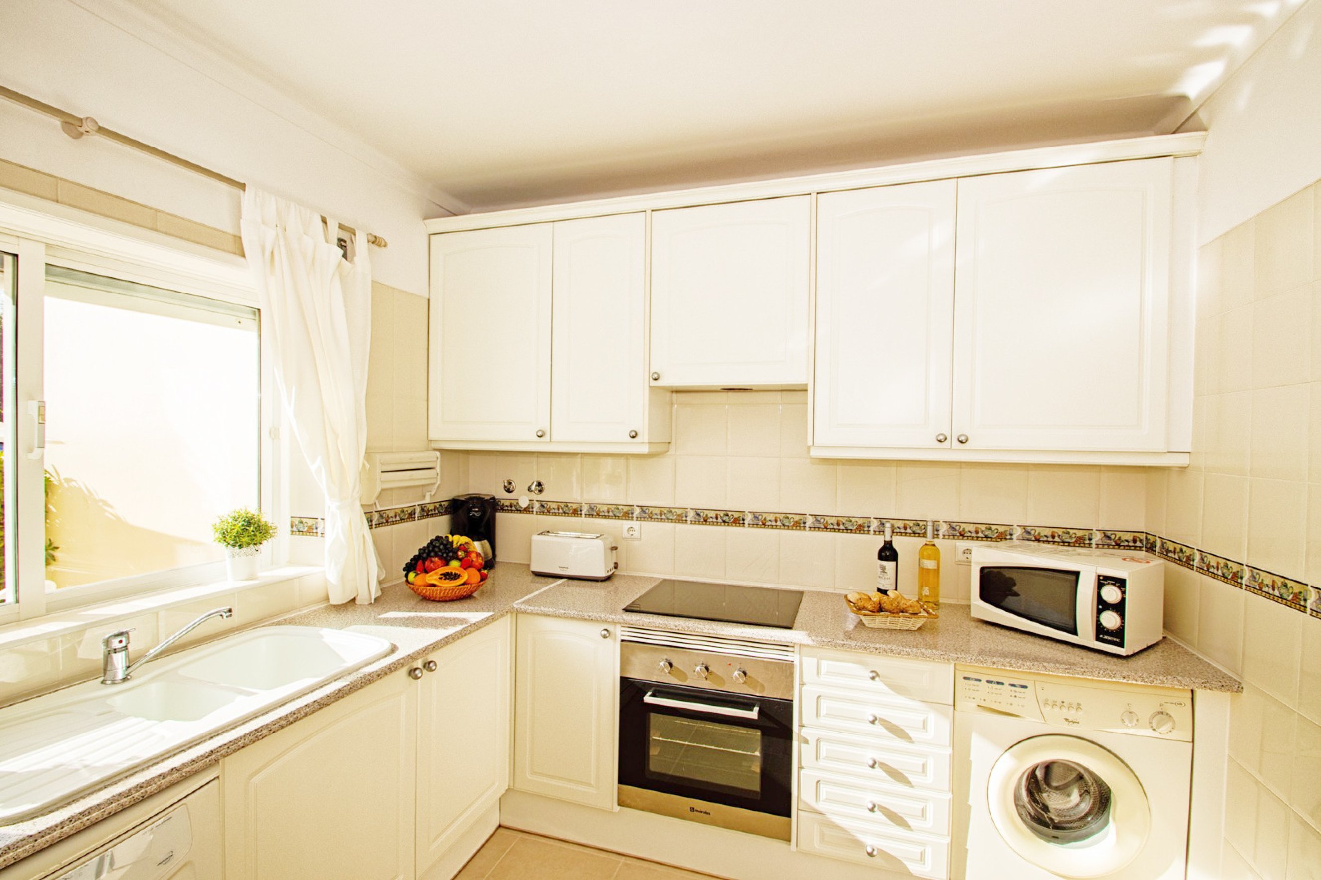 The fully equipped kitchen provides all the practicality needed for preparing family meals in a functional and pleasant environment.