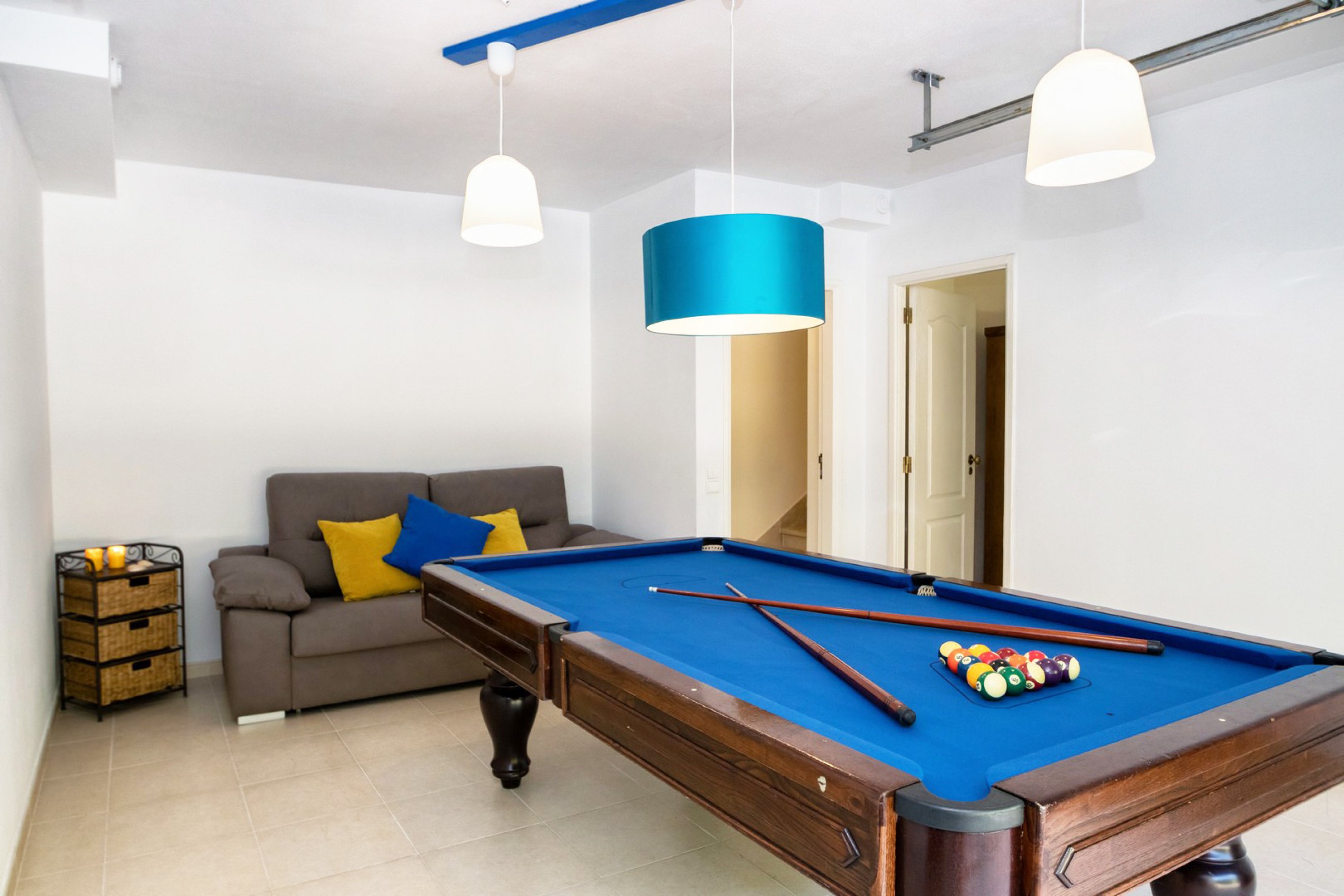 Outside, the charming patio with garden furniture invites you to enjoy al fresco meals while overlooking the green areas of the condominium. The property also includes a spacious games room on the lower floor, ideal for fun and entertainment.