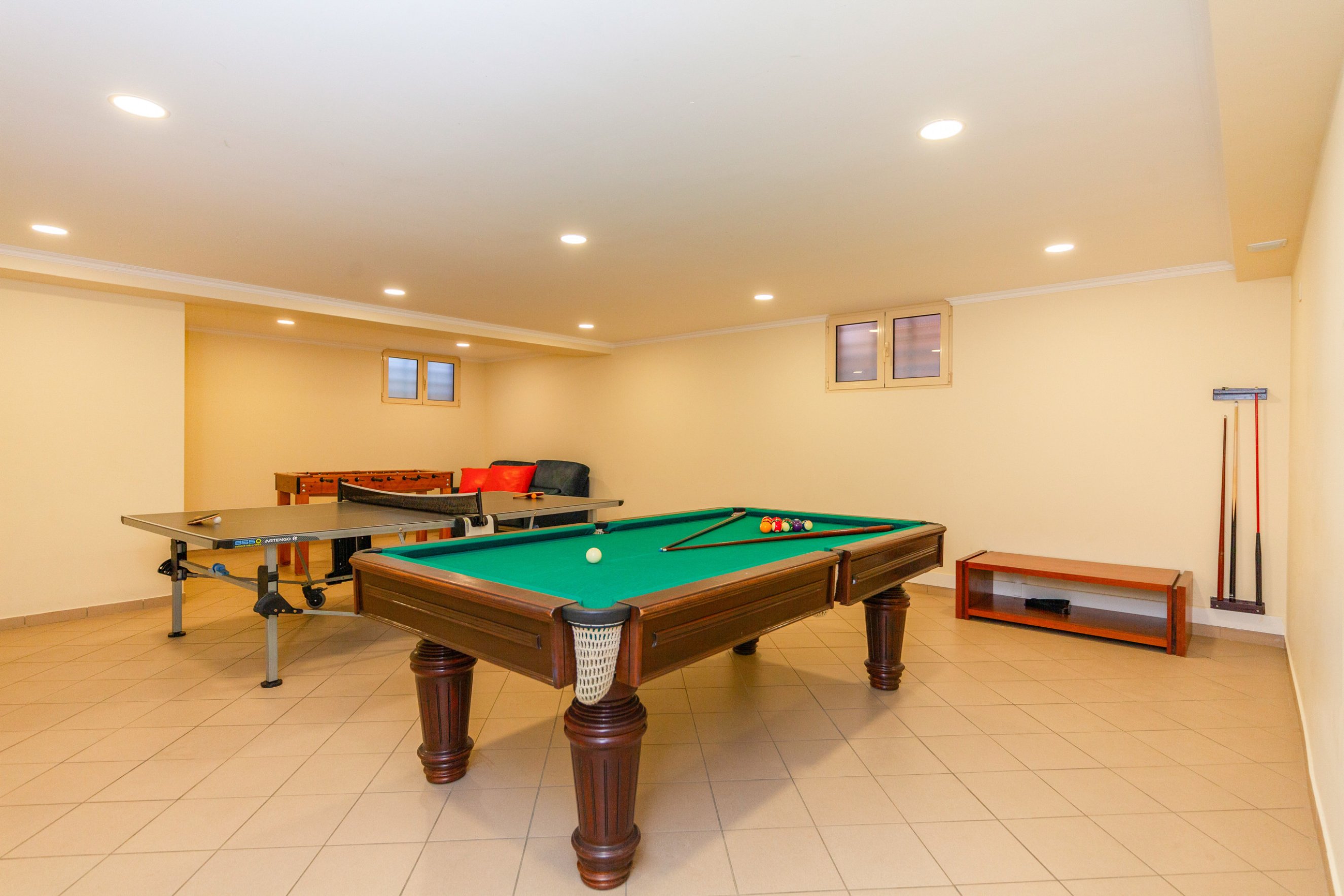 The games room includes a snooker table and table football, offering great entertainment for the whole family or group.