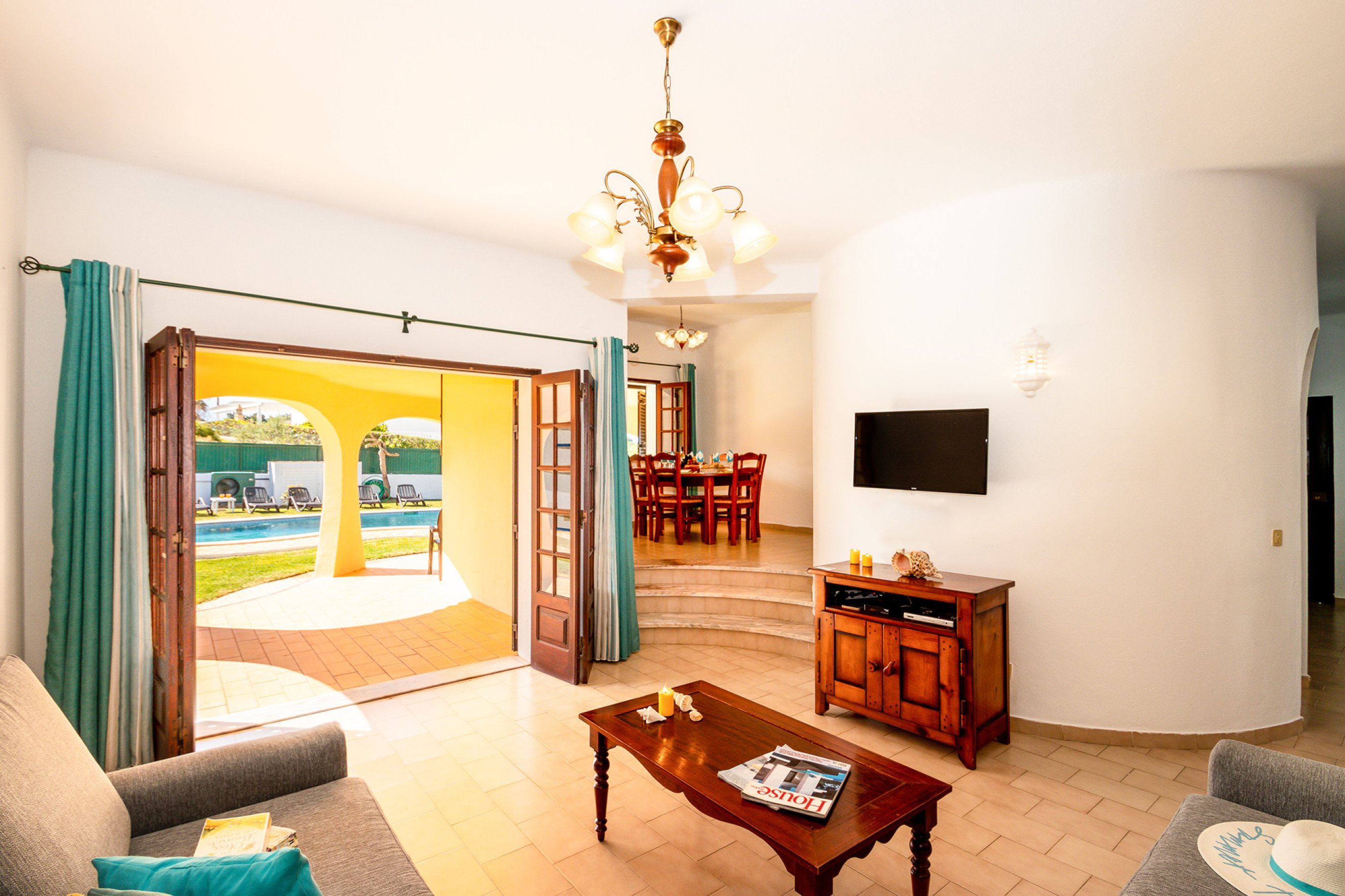 The living and dining area is bright and welcoming, with direct access to the terrace and pool area, creating a harmonious space to relax, socialise and enjoy indoor and outdoor living in perfect balance.