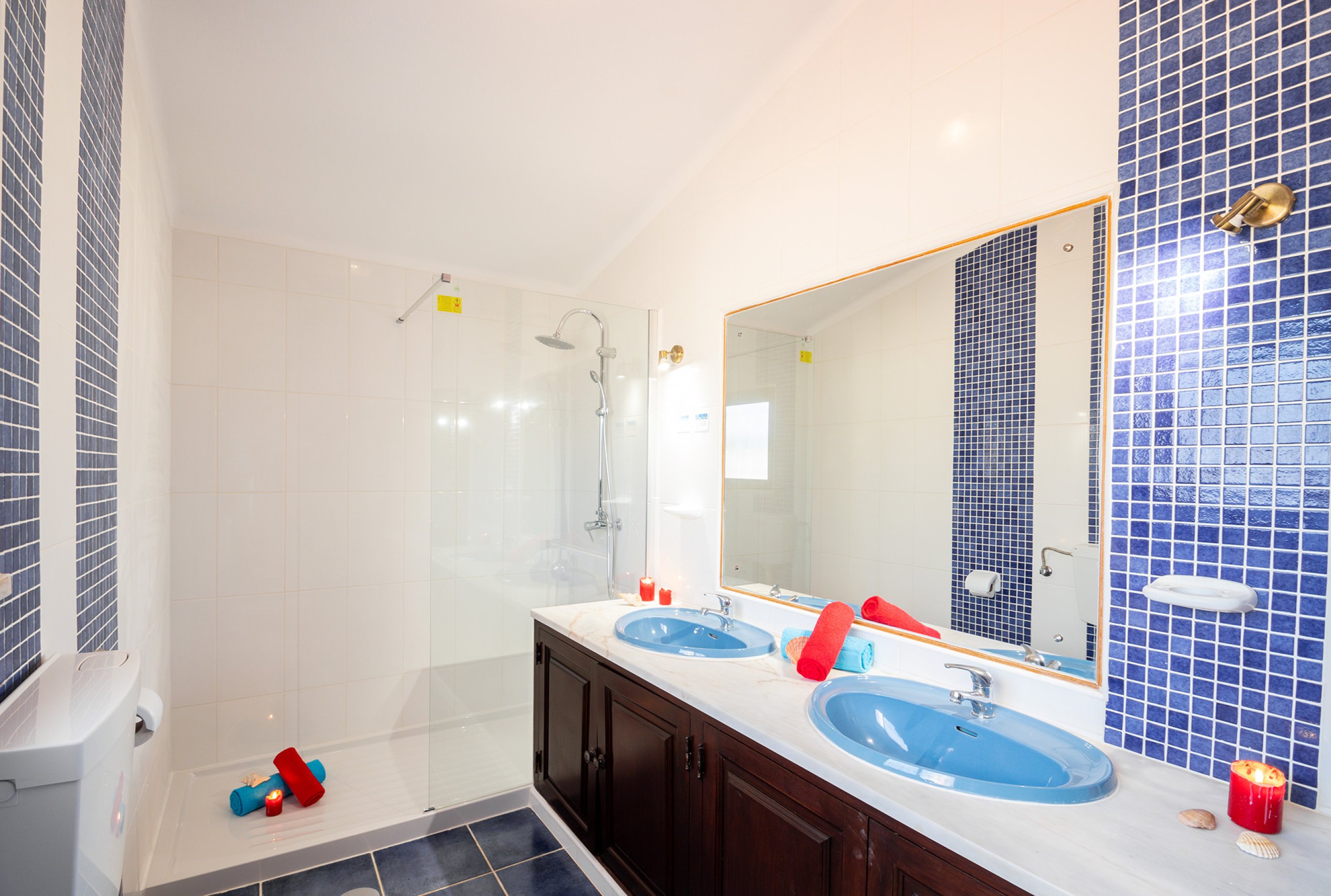 On the ground floor there are three bedrooms, all with two single beds, comfortably arranged and well distributed, served by a full bathroom with two showers, offering a practical and functional solution for guests.