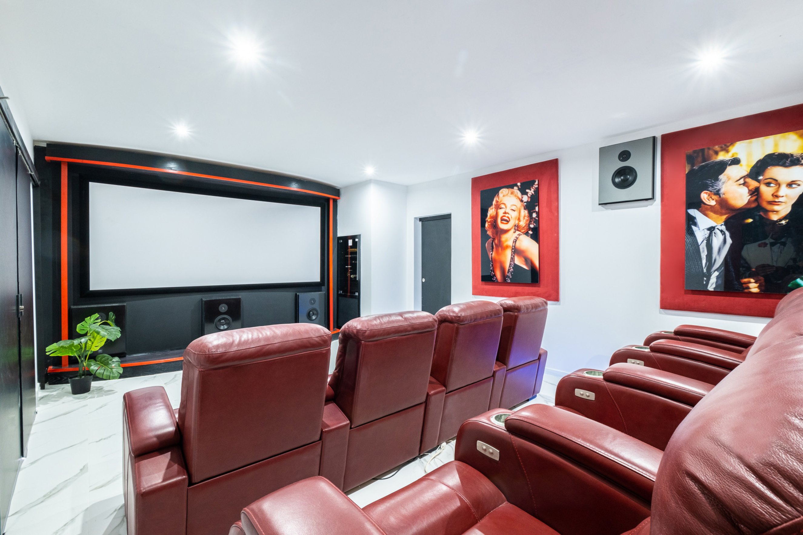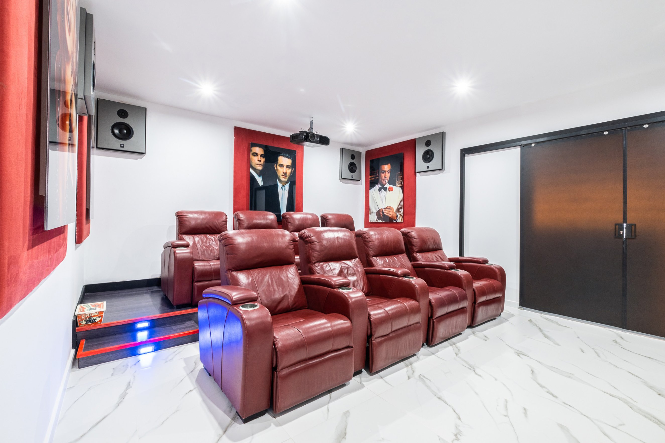The lower floor includes two suites with double beds, both with bathrooms with showers, plus a suite for four people with two single beds and a bunk bed. This floor also has a guest WC and features the games room with a snooker table and a cinema room, creating the perfect entertainment space for all ages.